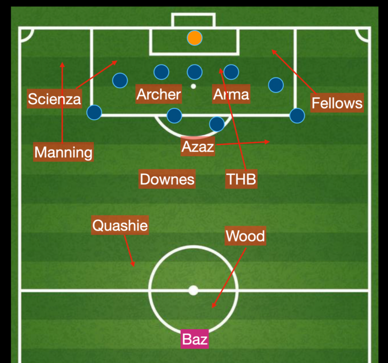 We weren't playing 5 at the back. THB pushed up into midfield and both Manning and Fellows were playing as wingers.