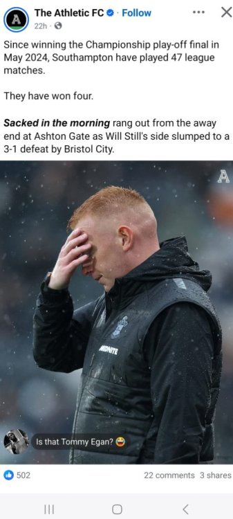 That one made me laugh , also the many arrogant posts about how poor the championship was so even our players would dominated it. Week in week out we're being shown what a well organised group of hard working players can achieve compared to our bunch of jokers. Had an in depth debate on way home last night and conclusion was there probably is little point in sacking Still. Club is such a mess, recruitment is a disaster we spent a fortune and failed to address key areas. No confidence in Spors or any of the key decision makers. Season is a write off.