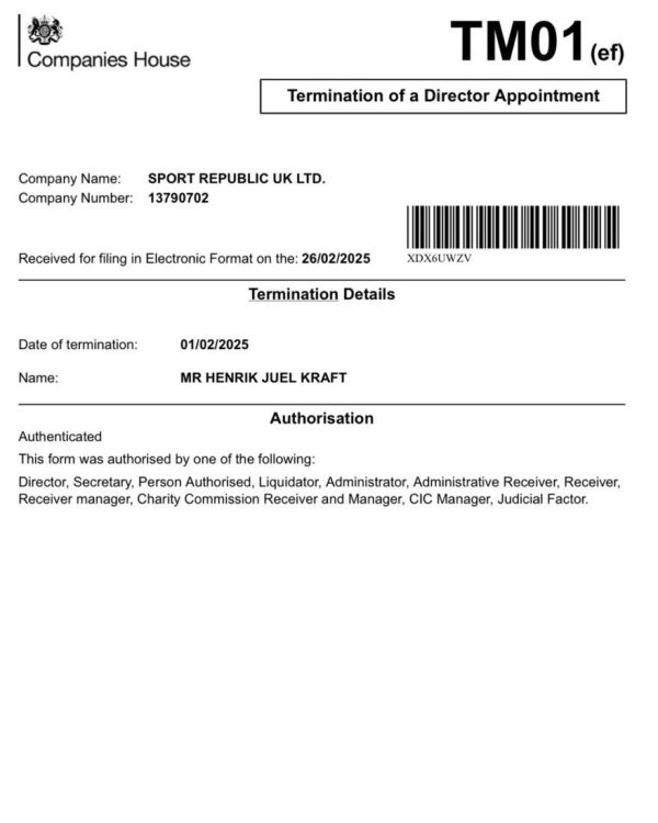 Henrik Kraft left his roles at Valenciennes and Saints a few weeks ago. He has now left his director role at Sport Republic...