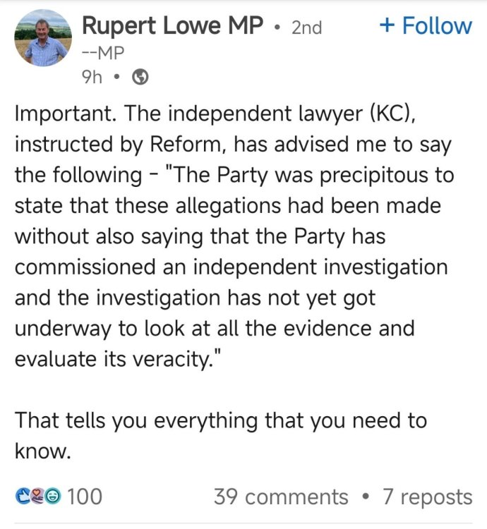 Lowe's been using linkedin as a political tool for a while now. Fair to say he doesn't get masses of engagement. Anyways, he posted this late last night.