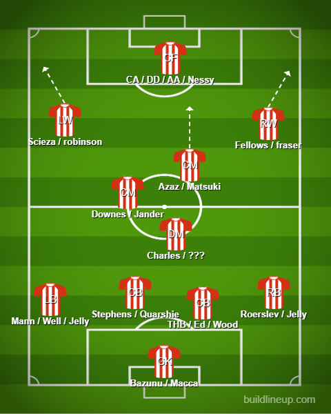 Sounds like we're looking at something like this for the season: I personally prefer having Jander/Downs as a more deep lying creative playmaker in a midfield 3, with Azaz pushing up to support the attackers (he was popping up everywhere vs Watford, finding the pockets and linking the play in the final 3). This approach would give us plenty of options, with movement from the attacking 4 players, and a 2man midfield that is very capable of anchoring the side and recycling play (all 3 of Jander/Downes/Charles are very good for this). I also wouldn't be too attacking with the full backs / wing backs - we are wide open time after time with them doing that - and frankly we need to be tighter - quite happy with them supporting the wingers from behind, but don't need to see them playing in the oppo half regularly or doing mental overlaps that leave us wide open to cross field diagonals and counter attacks. Archer/AA offer mobile pacey strikers who can finish and get on the end of moves, and Downes/Stewart offer us a more physical mobile presence. All in all, the squad seems more balanced now and I am pleased with the amount of players we've shifted. But i do also think there is still too much scar tissue and hesitation from the Martin era - and it is notable that its the likes of Stephens/Manning/THB (could still not be match fit i guess) that are the ones making basic errors and letting the opposition in time after time. Too much to hope for that we sell one of them and get a top quality CB in? I accept we won't have a better keeper than Baz or Macca this year.