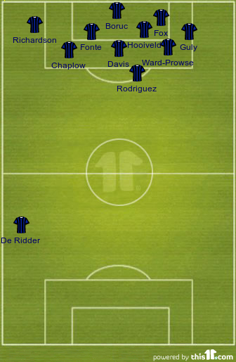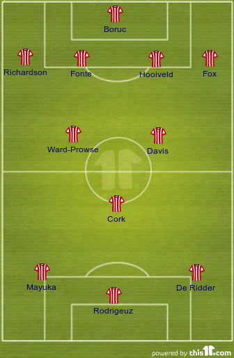 Boruc to have another game under his belt in goal, Clyne back at right back, no change at CB, Fox in for Shaw left-back, midfield of Puncheon, Davis, Cork and Guly, Rodriguez up front, with Ramirez playing behind him.