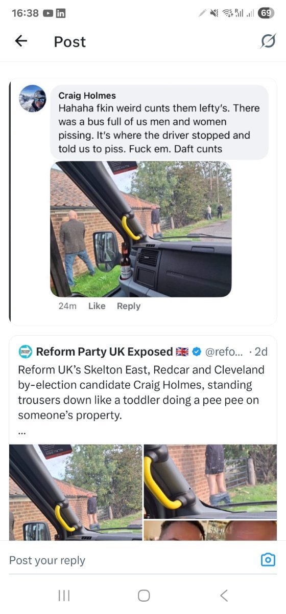 Gloucester Saint Posted 10 hours ago Posted 10 hours ago 8 hours ago, benjii said: The streets aren’t safe from Reform: Reform pissing it up the wall again
