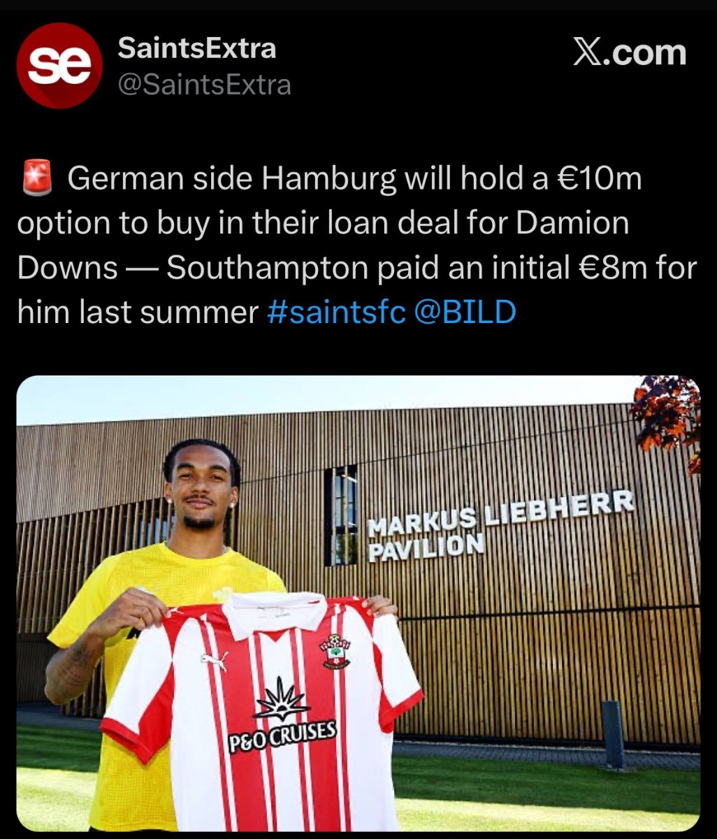 Badger Posted Sunday at 19:54 Posted Sunday at 19:54 8 hours ago, Sheaf Saint said: https://www.getfootballnewsgermany.com/2026/werder-bremen-in-talks-to-sign-southamptons-damion-downs/ In talks with Werder Bremen over a loan move, apparently. This bit in the article y9u posted caught my eye. Quote Bremen’s interest in Downs comes with Keke Topp (21) yet to score in 390 league minutes this season, while Victor Boniface, on loan from Bayer Leverkusen, is also yet to find the net. Can clearly see why they see Downes as the answer. Glad their recruitment of strikers has been as good as ours, perhaps their Head of Scouting will be brought to Saints in the summer. 1 2
