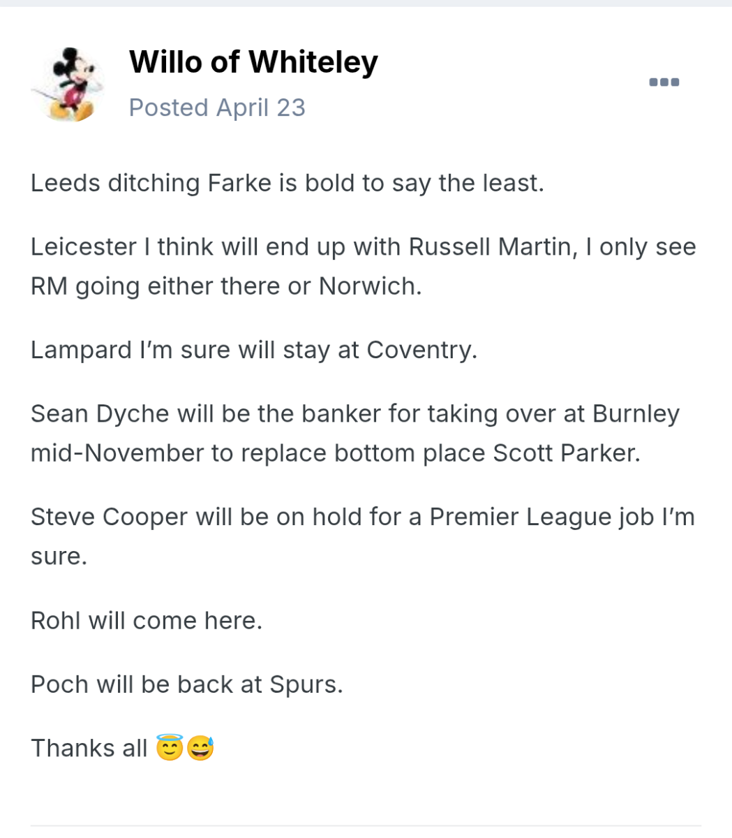 Bakovnetski Posted 1 hour ago Posted 1 hour ago 8 hours ago, Dr. Kucho said: I’ll be honest that prior to seeing his name mentioned on here, I had never heard of Challinor. Had to look up online about him and what he has done at Stockport is amazing. However, if the board decides to sack Still, I don’t think Challinor is the right replacement. I think we need someone with experience in the Championship and possibly the Premier League. We are in free fall and need someone who can stop that and build the foundations for a fresh push to the Premier League. Someone who’s seen it, been around for a while and will get the respect from the players instantly. Challinor, Rosenior etc are all great prospects and will likely do well. Still included. But for a young manager to join us now could be very damaging for their career. We are becoming a managers graveyard if we continue like this. Long throw-in training would be top dollar 3