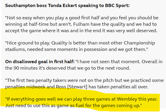SouthWalesSaints Posted 10 hours ago Posted 10 hours ago 5 minutes ago, Oisin said: I’m really not convinced the decision to play a back 3/5 was his to be honest. In fact I’m reasonably certain it wasn’t. Since the powers behind the scenes did their job in providing a keeper and number 9 and left him alone to do his job unhindered, without tactical interference, he’s done an amazing job. The run will end at some point but however the rest of this season pans out he deserves to be leading us next season. If the season ends in failure (as it probably still will) it’ll be down to bad decisions by SR in the summer and right through until he was allowed to do what he thought best after Hull. If it somehow ends in success he deserves the vast majority of the credit. Of course it was his. If you genuinely believe that a manager wouldn’t pick his own side then you’re miles off it. The sole reason he played a back 3 was a lack of physicality…. Jelert and Armstrong come out of the side he’s added Bree who defends well and has size in duels and Stewart/Larin come in up top and we are able to play a 4 that can physically play with the demands of the division.