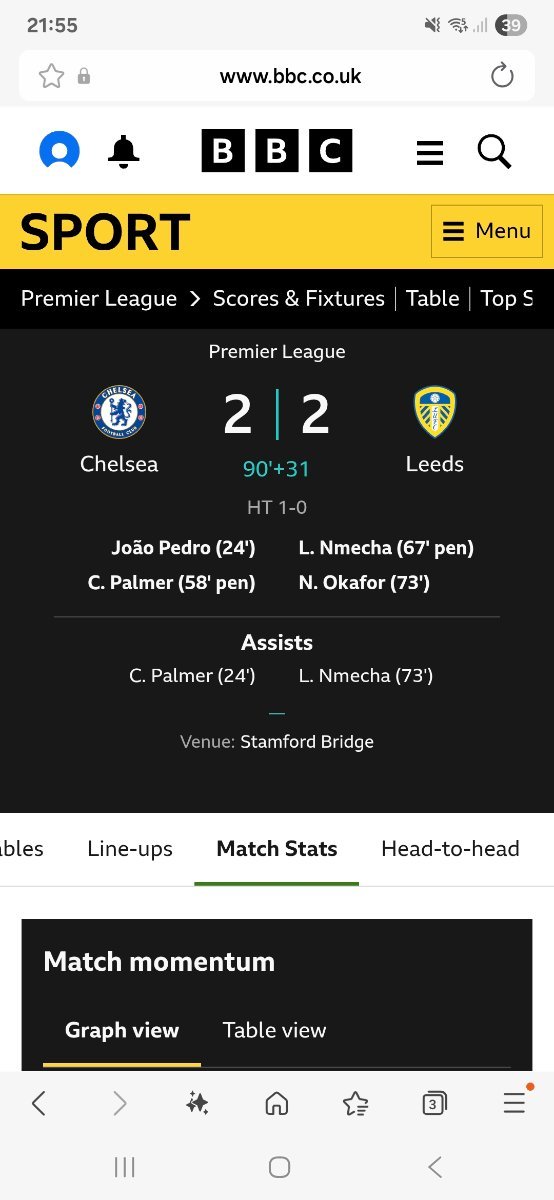 iansums Posted 1 hour ago Posted 1 hour ago BBC Sports app notifications fucked up, game was 1-3 as far as I was concerned, heard a ping, assumed it was final whistle and we’d lost, WTF!!!! 3